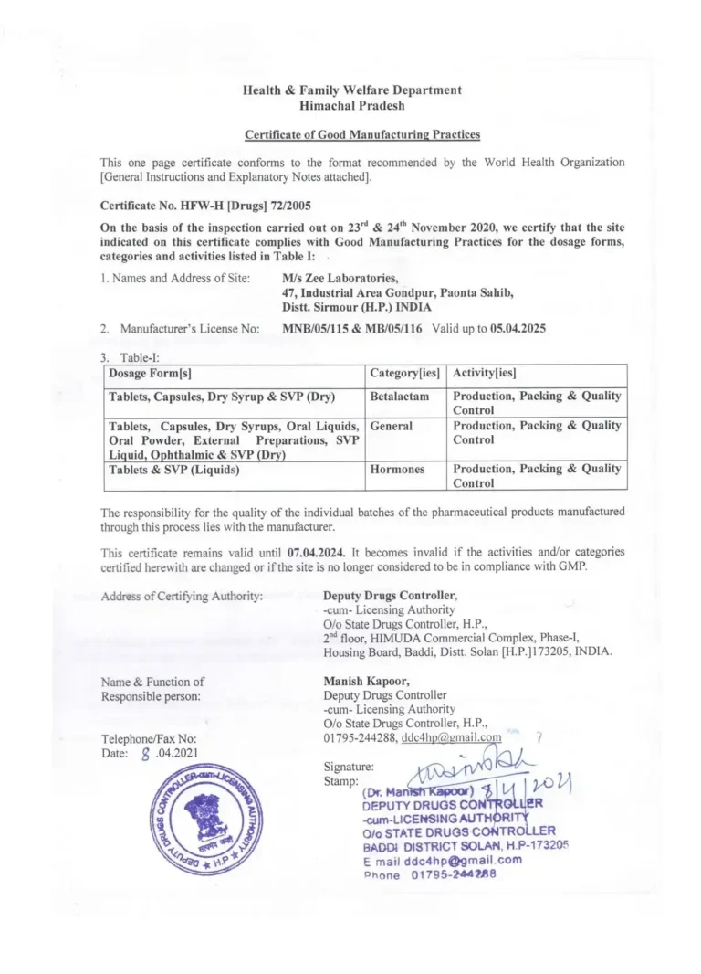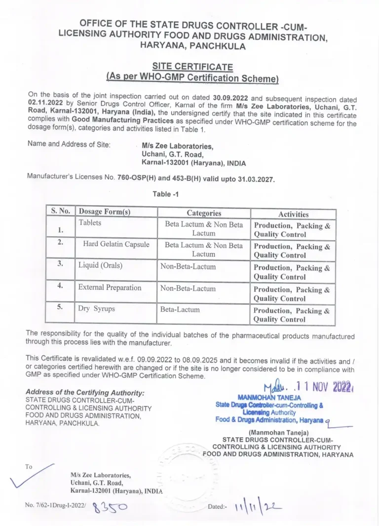 Our commitment towards quality has been appreciated and recognized by several Goverments world wide. All our manufacturing units are as per International norms & WHO-GMP Certified. Other certification include ISO 9001 : 2000, PPB Kenya & NAFDAC approvals. Many others like EUGMP, MHRA & PICS are under planning.
