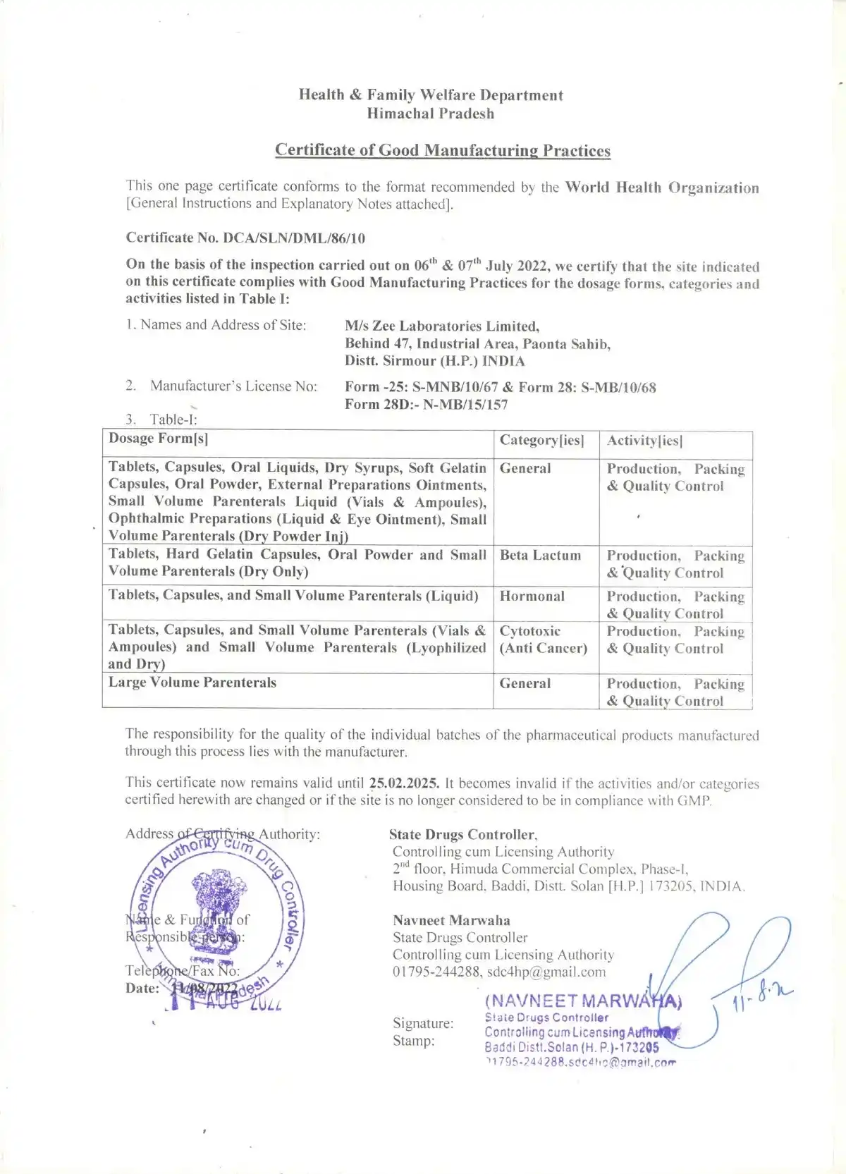 Our commitment towards quality has been appreciated and recognized by several Goverments world wide. All our manufacturing units are as per International norms & WHO-GMP Certified. Other certification include ISO 9001 : 2000, PPB Kenya & NAFDAC approvals. Many others like EUGMP, MHRA & PICS are under planning.