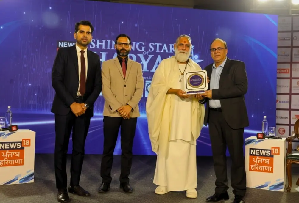 Our CMD Mr. Rajeev Mukul, was conferred with the Rising Stars of Haryana Award by Mahamandleshwar Gita Manishi Swami Shri Gyananand Ji Maharaj at a prestigious ceremony organized by News18 Haryana in Karnal