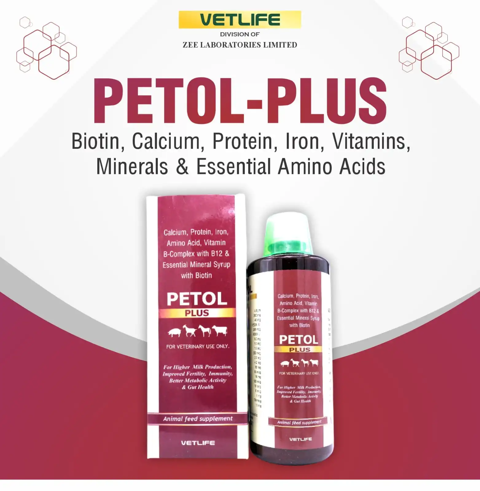 PETOL PLUS helps maintain optimal health, enhances productive performance, and supports overall well-being, making it an ideal daily supplement in modern animal management practices.